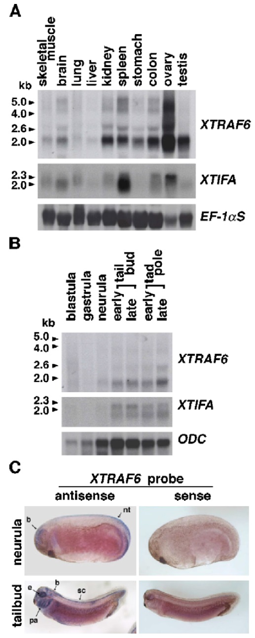 control. (C) Spatial expression of XTRAF6 transcripts during X. laevis