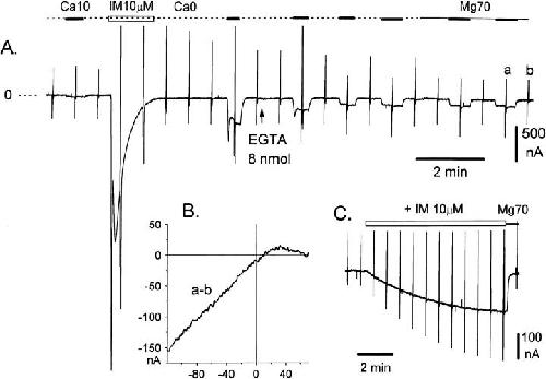 Parekh, Depletion of InsP3 stores activates a Ca2+ and K+ current by means of a phosphatase and a diffusible messenger. 1993, Pubmed , Xenbase