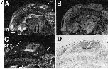 Fig. 7. Localization of mouse fiz mRNA in 11.5 dpc embryos. (A) Dark field illumination of a sagittal section of a 11.5 dpc mouse embryo hybridized with 35S-labelled mfiz antisense RNA probe. (B) Dark field image of a parallel section probed with mfiz sense RNA. (C) Enlargement of the neural tube area in (A). Glial cells ensheathing dorsal roots and cells in the ventral area are marked by arrows and arrowheads, respectively. (D) Bright field image of (C). A stripe of mfiz mRNA-expressing cells in the medial region of the neural tube is marked by an arrowhead. Abbreviations: DA, dorsal aorta; DRG, dorsal root ganglion; NT, neural tube; UR, urogenital ridge; V, vertebra. Bars represent 80 μm in (A,B) and 40 μm in (C,D).