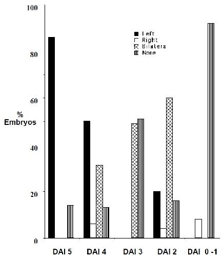 a DAI 5 embryo. (B) Bilateral expression in the top embryo and left