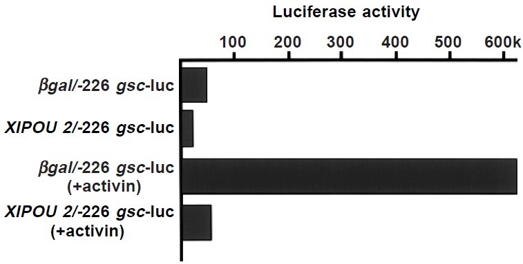 Fig. 4. XlPOU 2 suppresses the activin-induced activation of the gsc