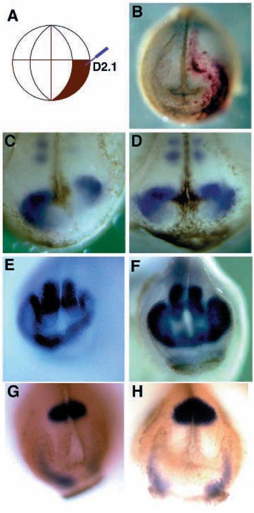 in situ hybridization. Two dorsovegetal blastomeres (A-P) or two