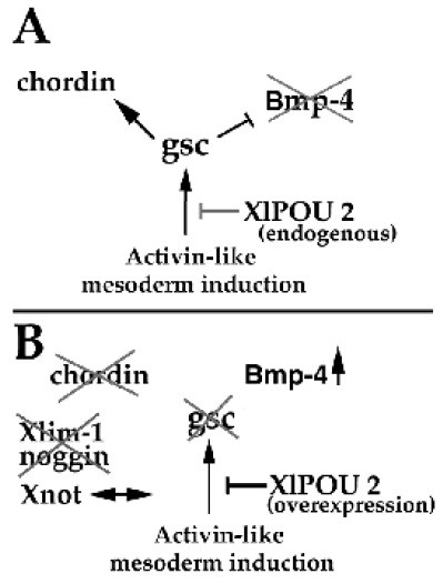 activation of gsc by mesoderm induction. (B) When XlPOU 2 is