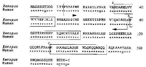 FIG. 2. Alignment of total amino acid sequences of Xenopus and