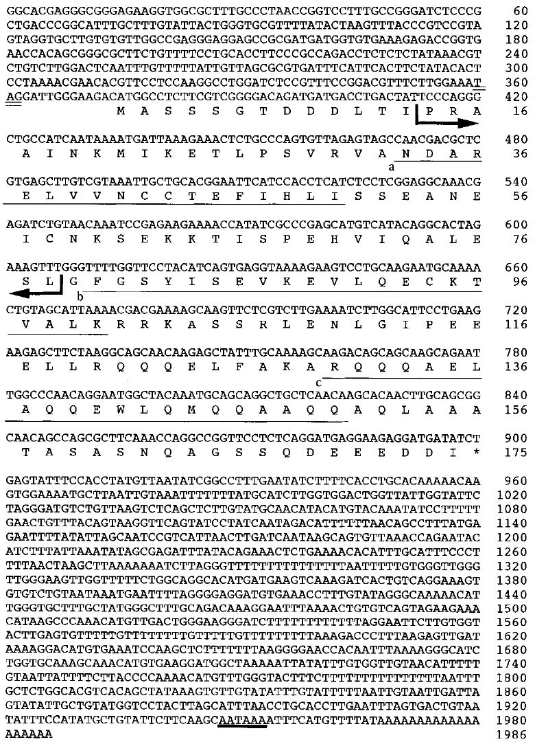 regions underlined by thin Unes (a-c). the In-frame stop codon