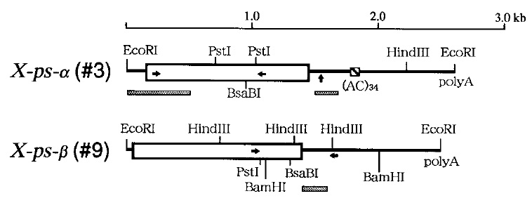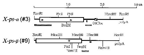 FIG. 1. Structures of X-ps-a and X-ps-b cDNA clones. The cDNA