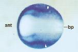 zone. B: dorsal view of a late gastrula. C: anterior view of the same embryo as shown in B. Arrowheads point out a stripe of strong XHR