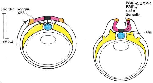 the shh signal, which is opposed by a number of BMP-related molecules expressed in the dorsal neural tube and nearby ectoderm.