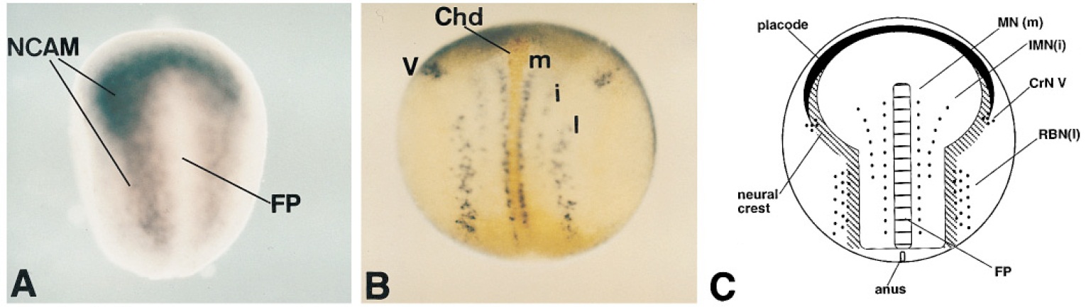 neurula. The N-CAM staining demarcates the early neural plate. Note that the presumptive floor plate is devoid of N-CAM transcript,