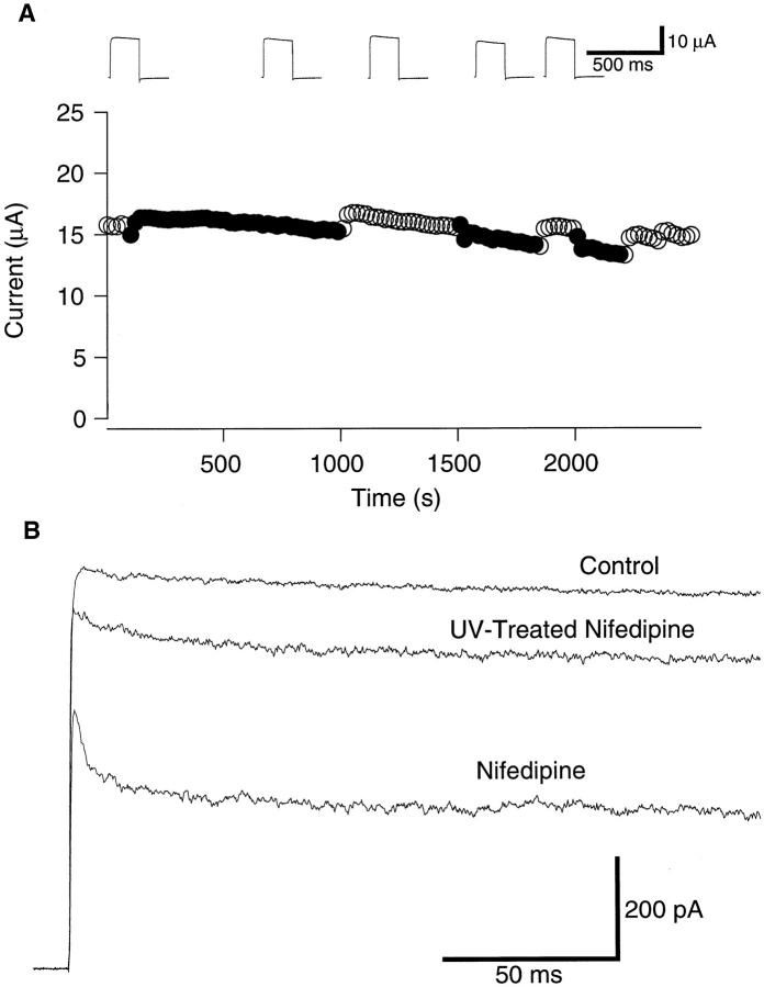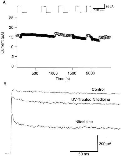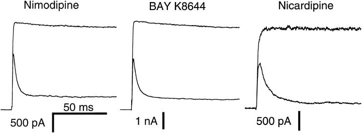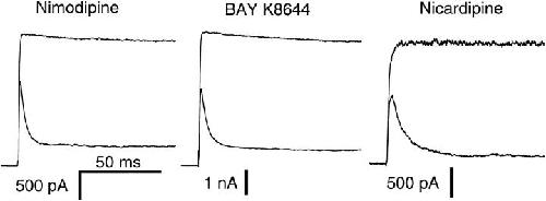 nifedipine block. The currents elicited by 200-ms voltage pulses to