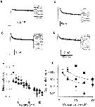 Icontrol. Data points represent mean ± standard deviation of six experiments. (D) Time constants of the current decline induced by