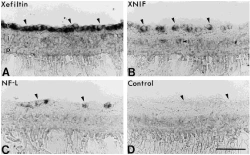 Fig. 5. Expression of xefiltin (A), XNIF (B) and NF-L (C) transcripts