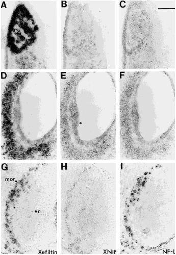 xefiltin (G) and NF-L (I) mRNAs, and barely detectable levels of XNIF