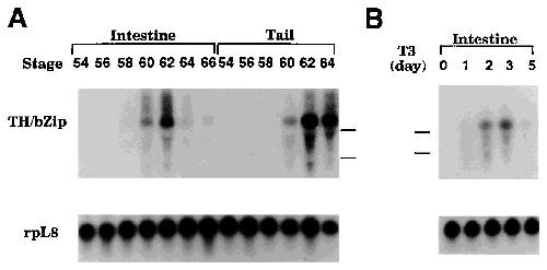 that the TH/bZip mRNA could be detected as early as 8 hr after T3