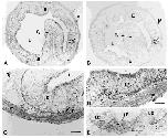 the degenerating larval epithelium is negative. 3525. Bars: 20 μm.
