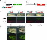 Figure 5. The 5′-flanking region is important for Maf proteins to function in vivo. Transgenic embryos containing a GFP reporter gene were generated by REMI. (A) The structure of reporter and control genes used. (B) Transgenic embryos were confirmed by analysis of RFP signal driven by the CMV promoter. GFP driven by the cαA was expressed in lens (le), rhombomeres (r), neural crest (nc) and pronephros (p), where XmafB and XL-maf are expressed. GFP signals driven by cαA-1 and cαA-3 were not detected in transgenic embryos, although they expressed RFP. Number of embryos tested (RFP positive) and ratio of indicated phenotypes to RFP positive embryos are shown by percentage. (C) Magnification of the embryos described above.