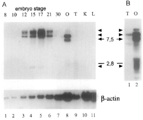 and 8.5 kb prevail, whereas oocytes mainly contain transcripts of 8.5