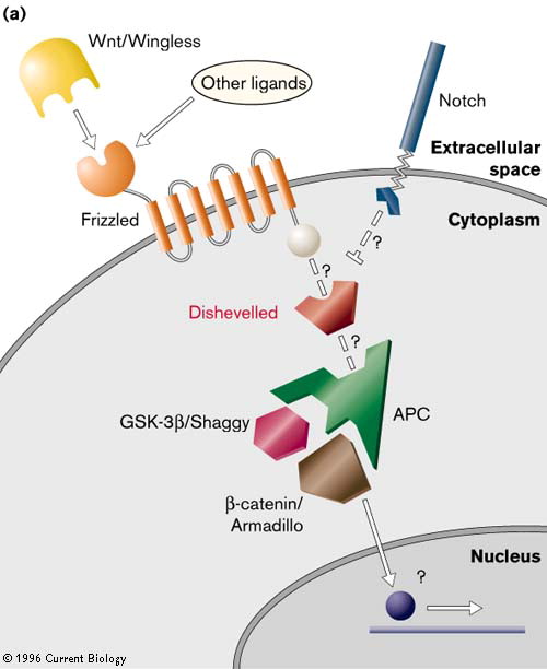 (a) Interaction of Dishevelled with other components of the Wnt signal transduction pathway. Dishevelled is thought to modulate the activity of β-catenin/Armadillo by transducing a signal from the Frizzled/Notch receptors to the GSK3/APC/β-catenin complex. This modulation leads to subsequent transcriptional activation of the target genes. (b) The wild-type and mutated Xdsh constructs used in this study.