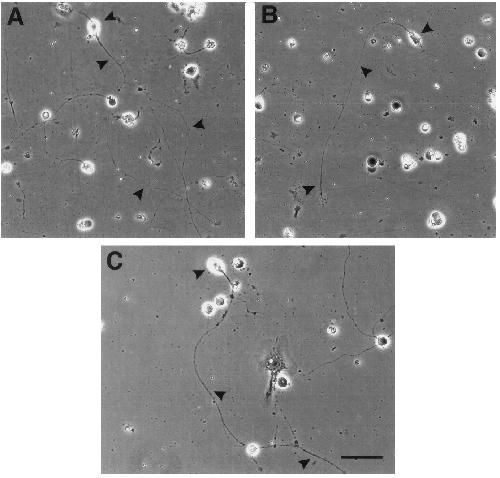 FIG. 6. Mophological features of cultured retinal ganglion-like cells (RGLCs). (A �C) Phase photomicrographs of stage 42/43 Xenopus