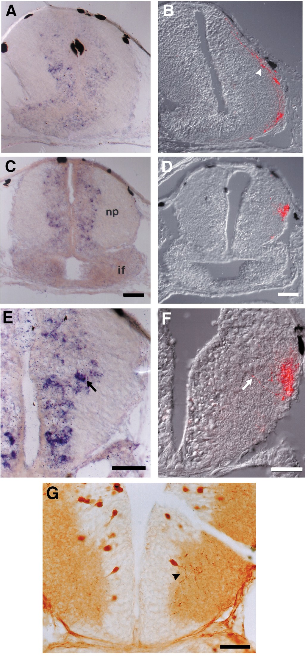 to the infundibulum (if). (E�G) High-magnification photomicrographs at the level of the optic tectum show some intensely stained