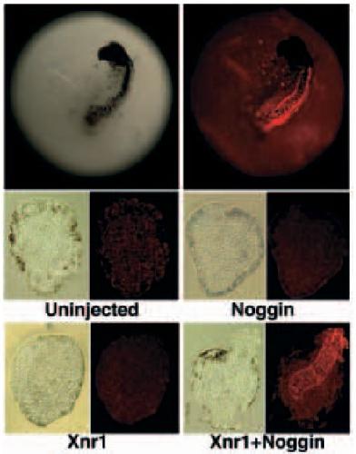 oocyte expressing both Xnr1 and noggin. Upper right panel: