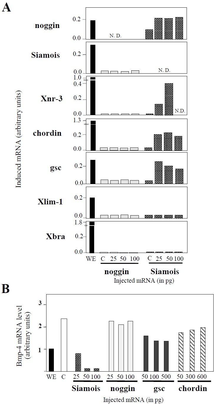 mRNAs. WE, whole embryo. (A) Effect of the injection of Siamois