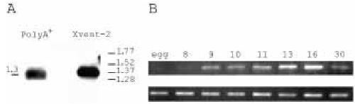 left, respectively. (B) RT-PCR analysis of Xvent-2