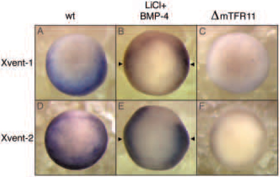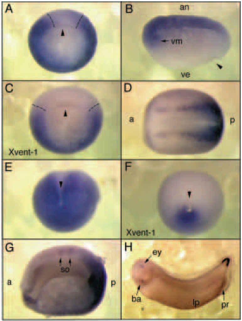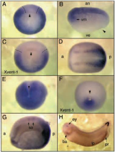 in situ hybridisations of Xvent-1 are shown (C,F). The dorsal