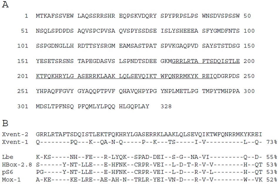 underlined. (B) Sequence alignment of the Xvent-2 homeodomain with other