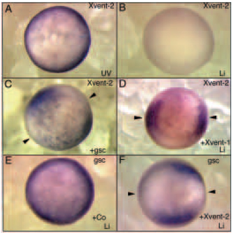 embryo probed for Xvent-2 expression. (B) LiCl-dorsalized embryo