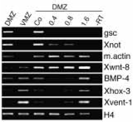 zones (VMZ) as indicated on top were explanted at the early gastrula