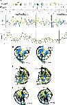 Figure 2. Comparison of the DNA parameters between human and X.laevis NCPs. (A) B-factors of phosphates, metal binding sites, r.m.s.d. values and twist base-pair-step parameter of the 146 bp DNA compared between human and X.laevis NCPs. The base pair numbers (−72 to 73) and SHL (−7 to 7) labels are the same as those in the earlier structures (11,12). The primary bound-phosphate groups are indicated above the base sequence by the pointers showing the strand direction (dark, 3′→5′; light, 5′→3′) and the interacting histone motif (L1, loop1; L2, loop 2; A1, α1). B-factors (Å2) are plotted for the 5′ phosphate group of each base (brown for the I chain and forest green for the J chain). Mn2+ binding sites are indicated above the base sequence by the yellow and light blue arrows (solid, binding the DNA major groove; broken, binding the DNA minor groove) in the structures of human and X.laevis NCPs (PDB code 1KX3) (11), respectively. The r.m.s.d. values below the base sequence were calculated by the superposition of 18 or 19 bp between two NCPs. The twist base-pair-step parameters were plotted as open circles and closed squares for the human (yellow line) and X.laevis (light blue line) nucleosomal DNA, respectively. The pink, orange and green ellipsoids of the twist parameters represent the corresponding regions illustrated by those in Figures 3A and B and Figure 4A. (B–D) The simplified stereo model of the DNA duplexes in the regions surrounded by the ellipsoids in (A). The differences in helical twist are shown by the superposition between human (yellow) and X.laevis (light blue; PDB code 1KX3) (11) NCPs, based on the histone octamers alone. Numbers presented for each base pair are the same as those in Figure 2A.
