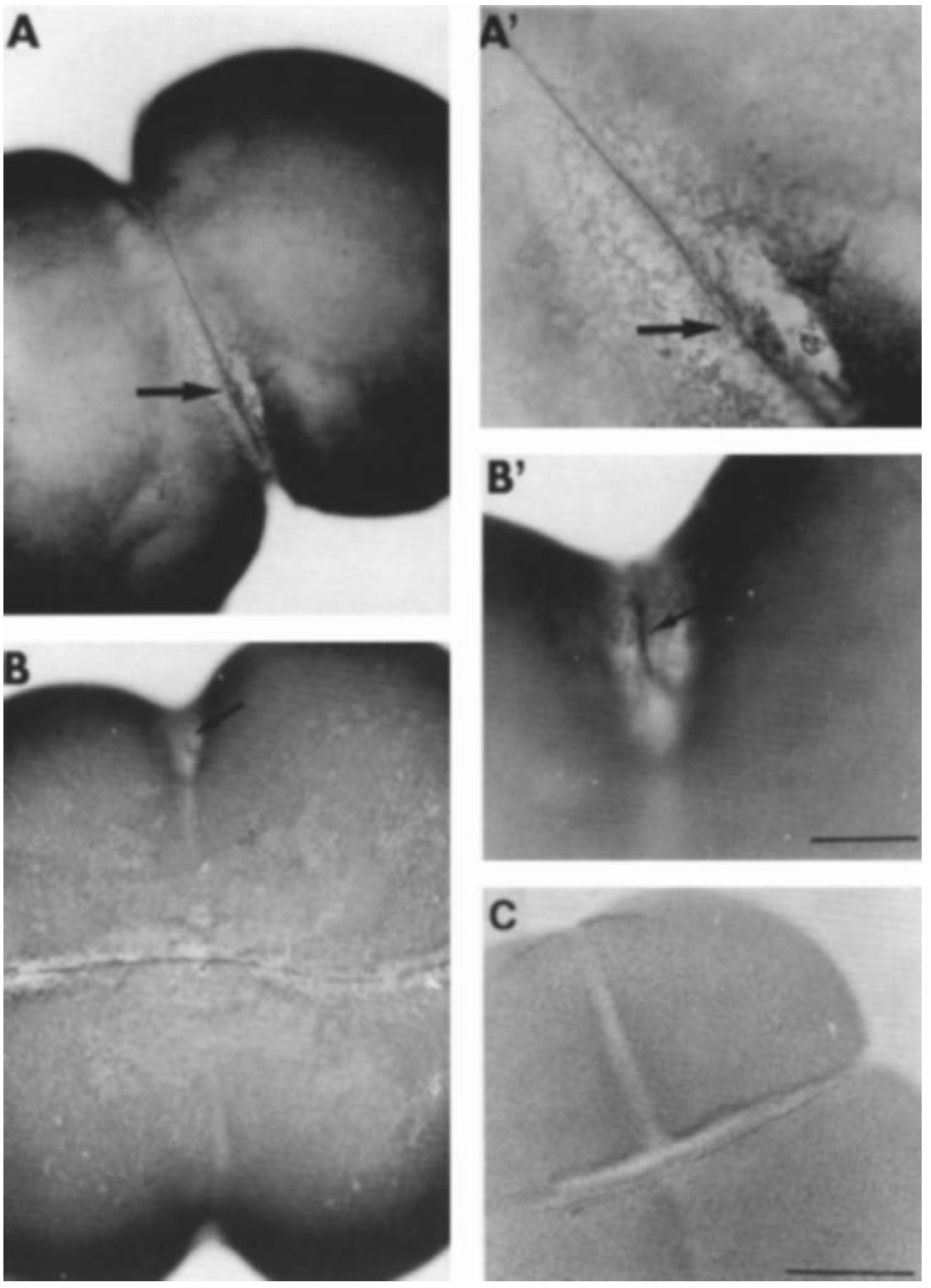 of Xenopus embryos. A,A: Two-cell embryo after first cleavage