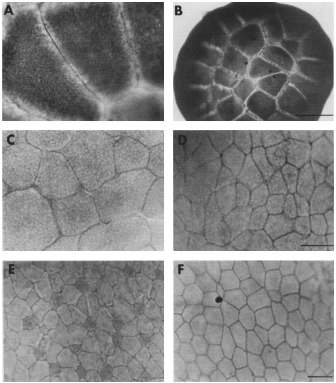 Tight junctions in early amphibian development: detection of junctional cingulin from the 2-cell stage and its localization at the boundary of distinct membrane domains in dividing blastomeres in low calcium.