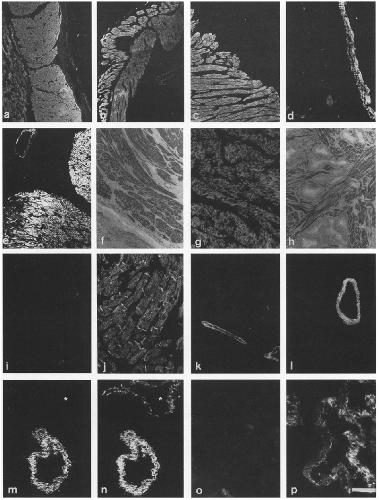 o) and either pDes (j) or sm-1 (n and p) show the absence of smoothelin in heartmuscle, skeletal muscle, and myoepithelial cells as well