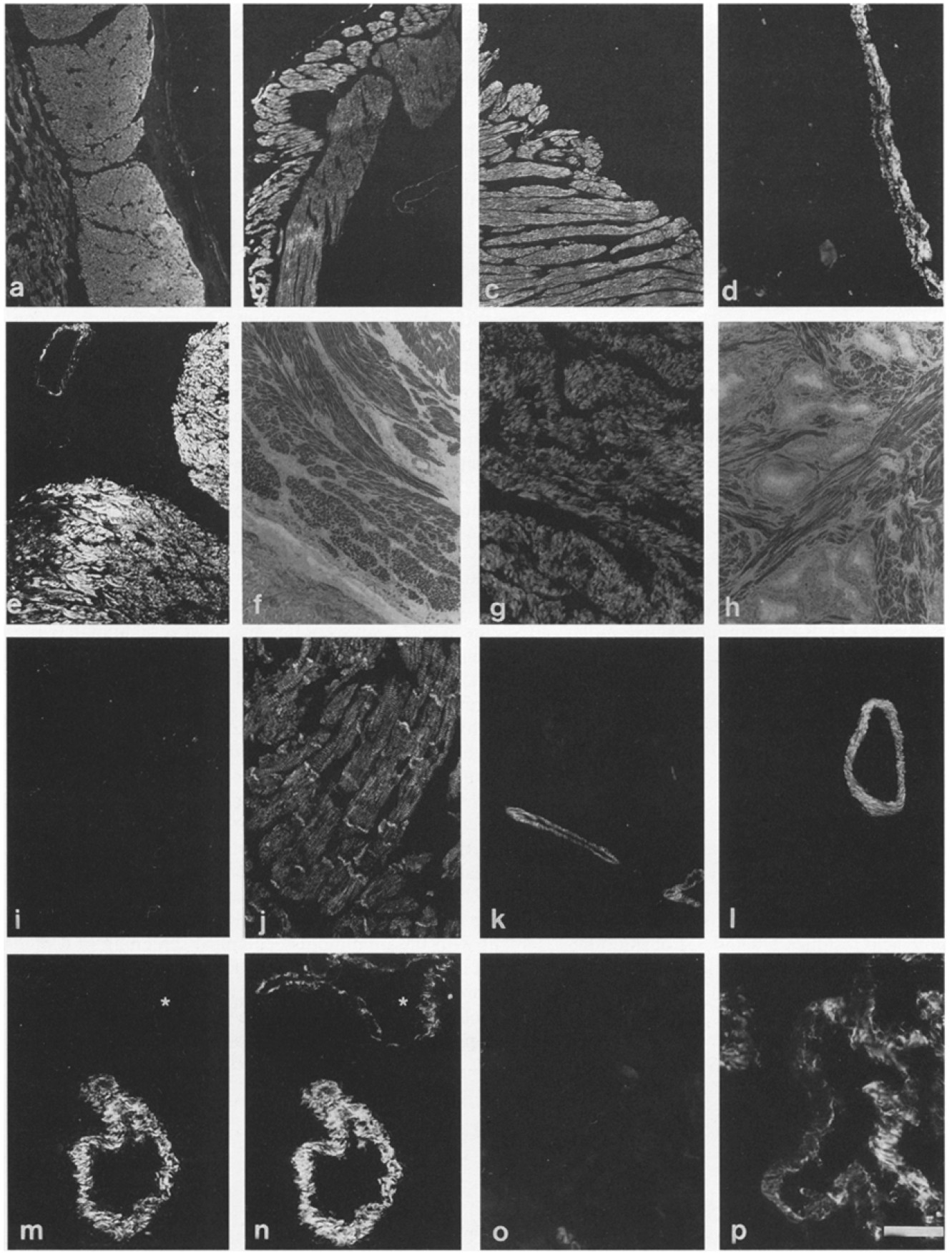 (k) and cat (/) hearttissue only smooth muscle cells surrounding the blood vessels are visualized by R4A, Double-stained sections of
