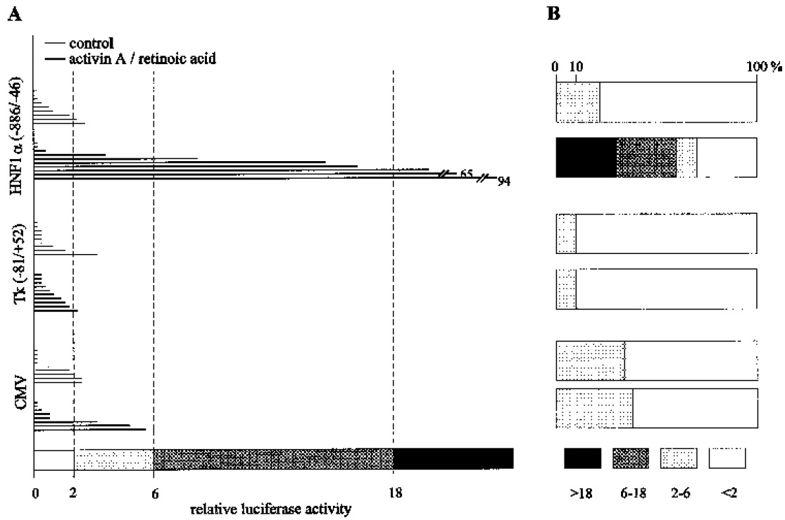 Fig. 6. Activation of the HNF1a gene by either activin A or retinoic