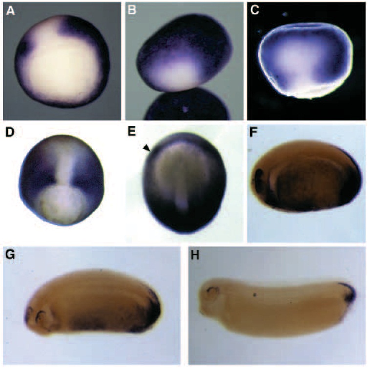 Xenopus embryos. (A) Dorsovegetal view of uncleared, stage 11
