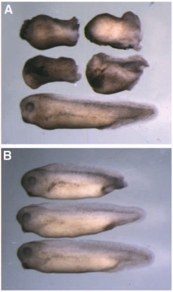 RNA, the closed blastopore is to the right. The bottom embryo is an