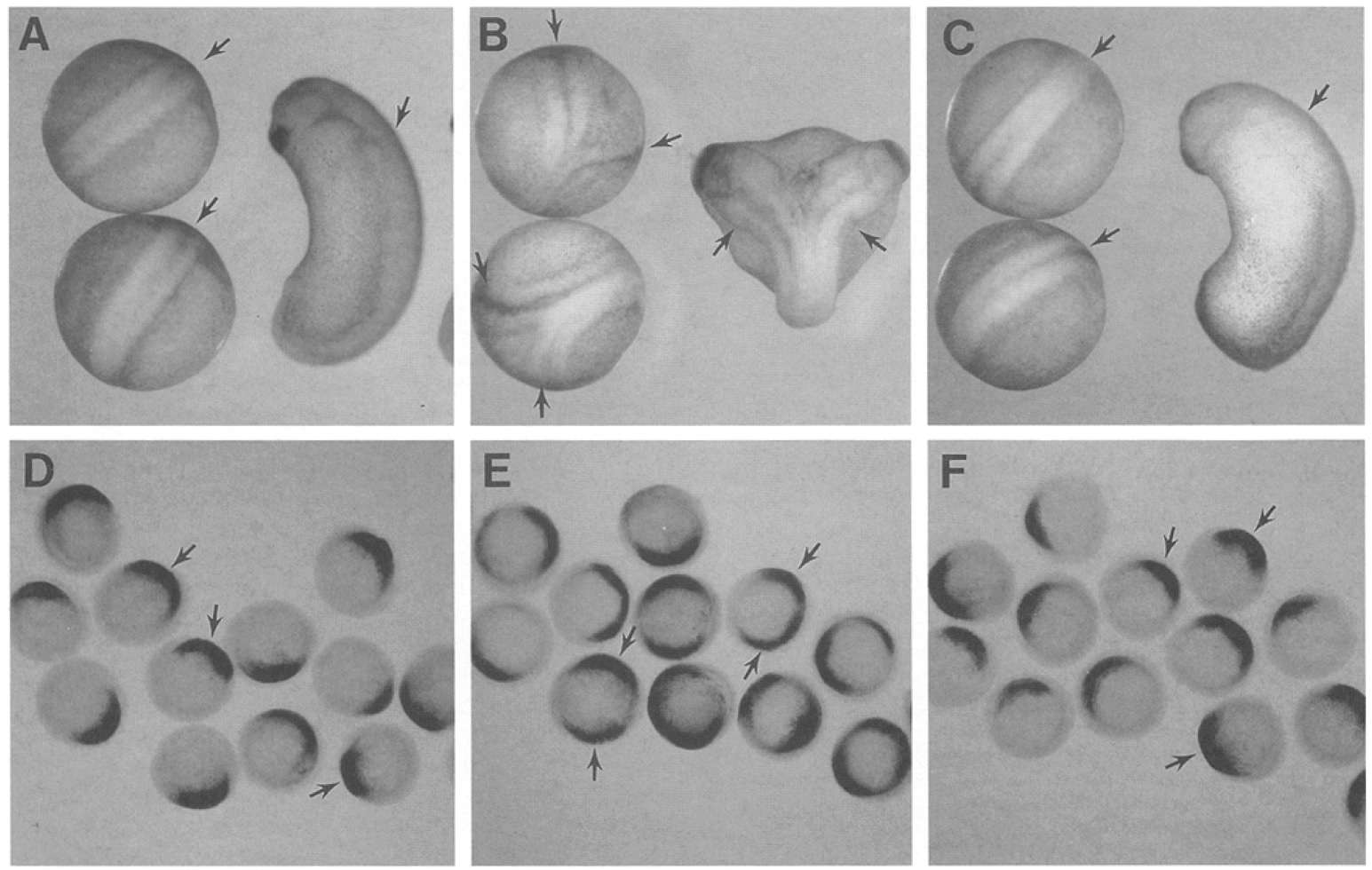 (Arrows) Axes (A, B, and C) and sites of gsc expression (D, E, and F).