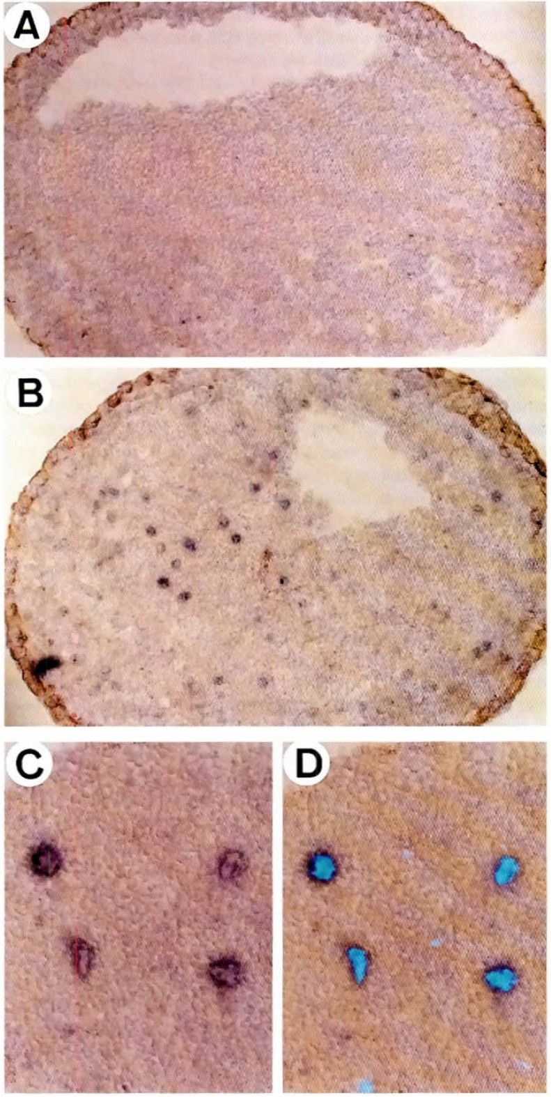 Fig. 5. In situ hybridization of nuclear transplant embryos for lacZ