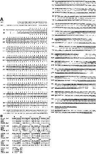 Figure 1. (.4) Sequence of XAC cDNAs and the encoded proteins. Regions at the Y-ends used for the probes for Southern and Northern