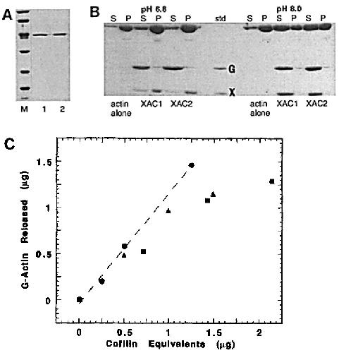 pH-dependent F-actin binding of XAC1 and XAC2. Approximately