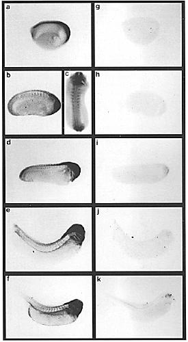 probe was used for c (the dorsal view). Controls (g-k) use the