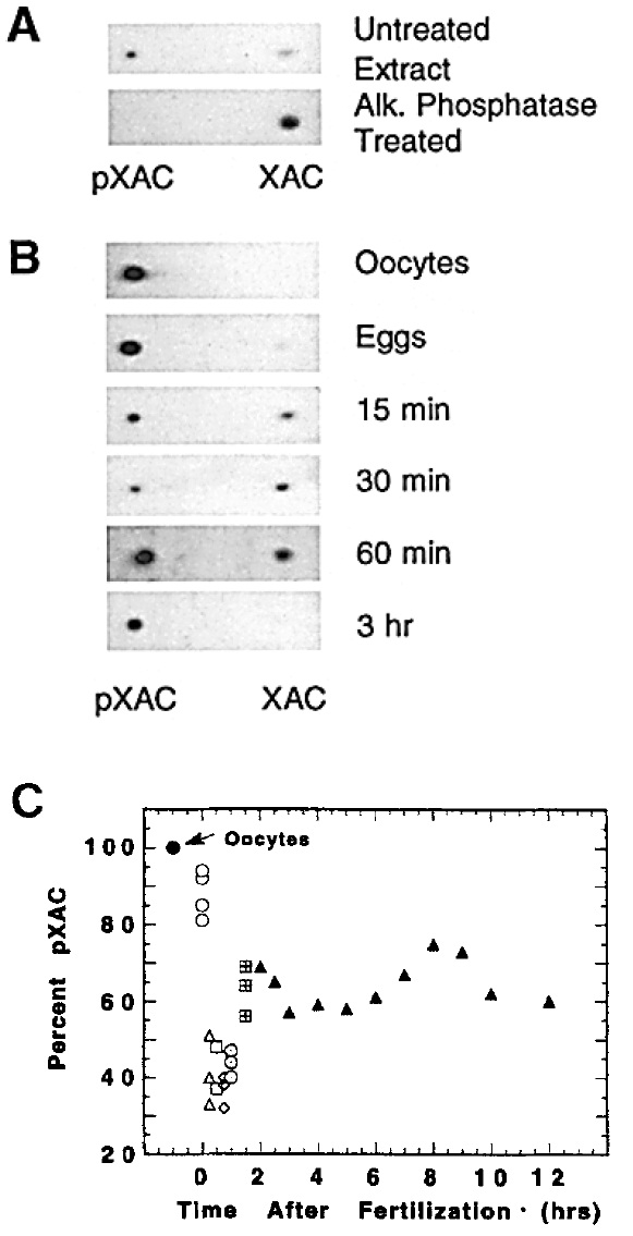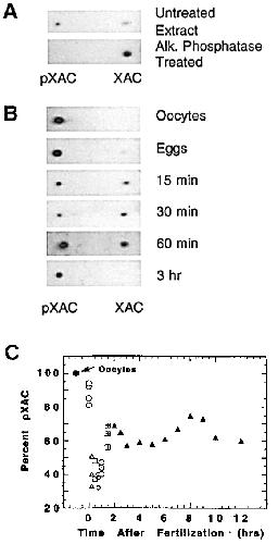 postfertilization. (C) pXAC as a percent of total immunoreactive