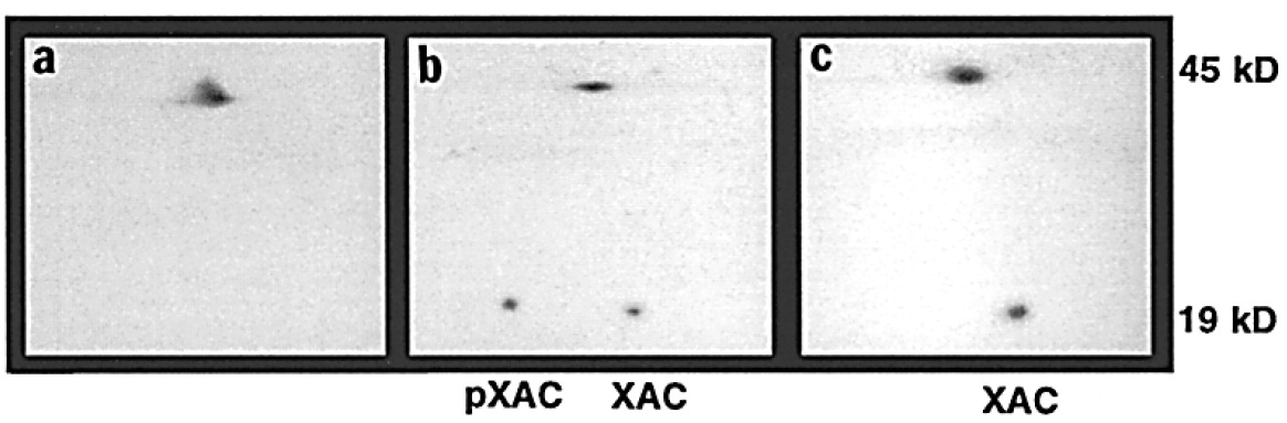 GST-XAC1. (c) Alkaline phosphatase treatment of this extract completely converted the endogenous pXAC to XAC, but the position