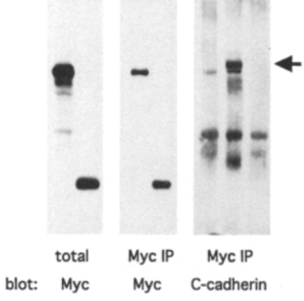 of 1% NP-40. (c) Detection of C-cadherin in MT1 and MT10 immunoprecipitates