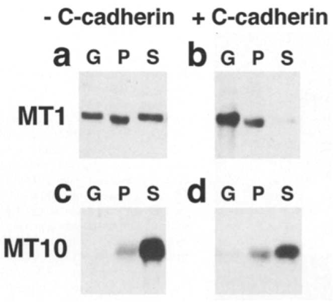 MT10 by coexpression of C-cadherin: cell fractionation. Late