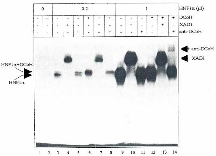 HNF1a (XHNFlaa) and 5 J-llXenopus DCoH translated in a reticulocyte