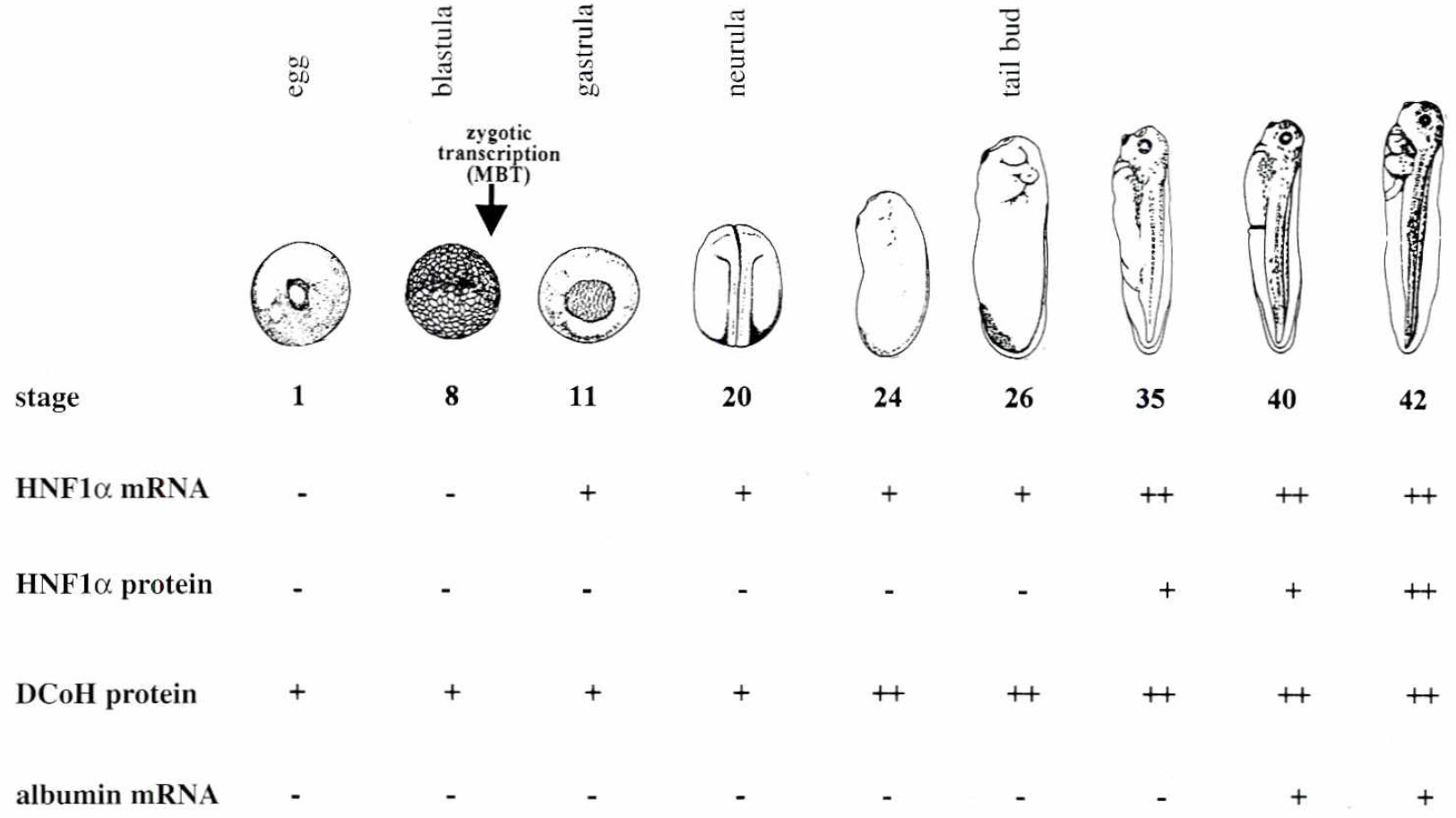 HNFla protein at various stages of development are given as determined in Bartkowski et al. (1993). The amount of DCoH is takenfrom Pogge v.
